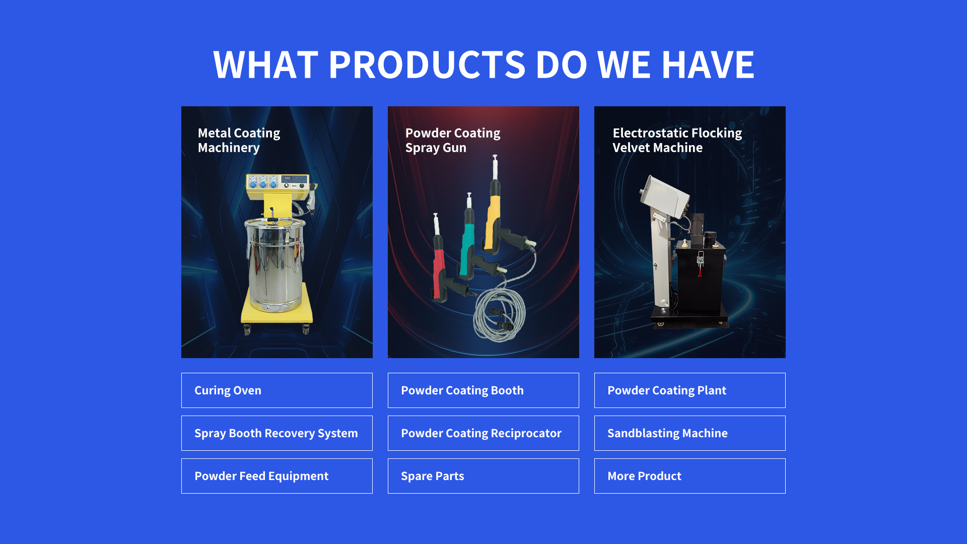 Automatic Powder Coating Equipment provides complete automated finishing solutions for industrial applications. These systems integrate robotic spray guns, precision conveyor systems and smart curing ovens to deliver consistent high quality finishes with minimal operator intervention.